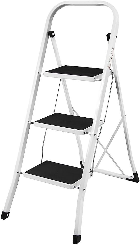 Home Vida 3 Step Ladder, Heavy Duty Steel, Portable Folding