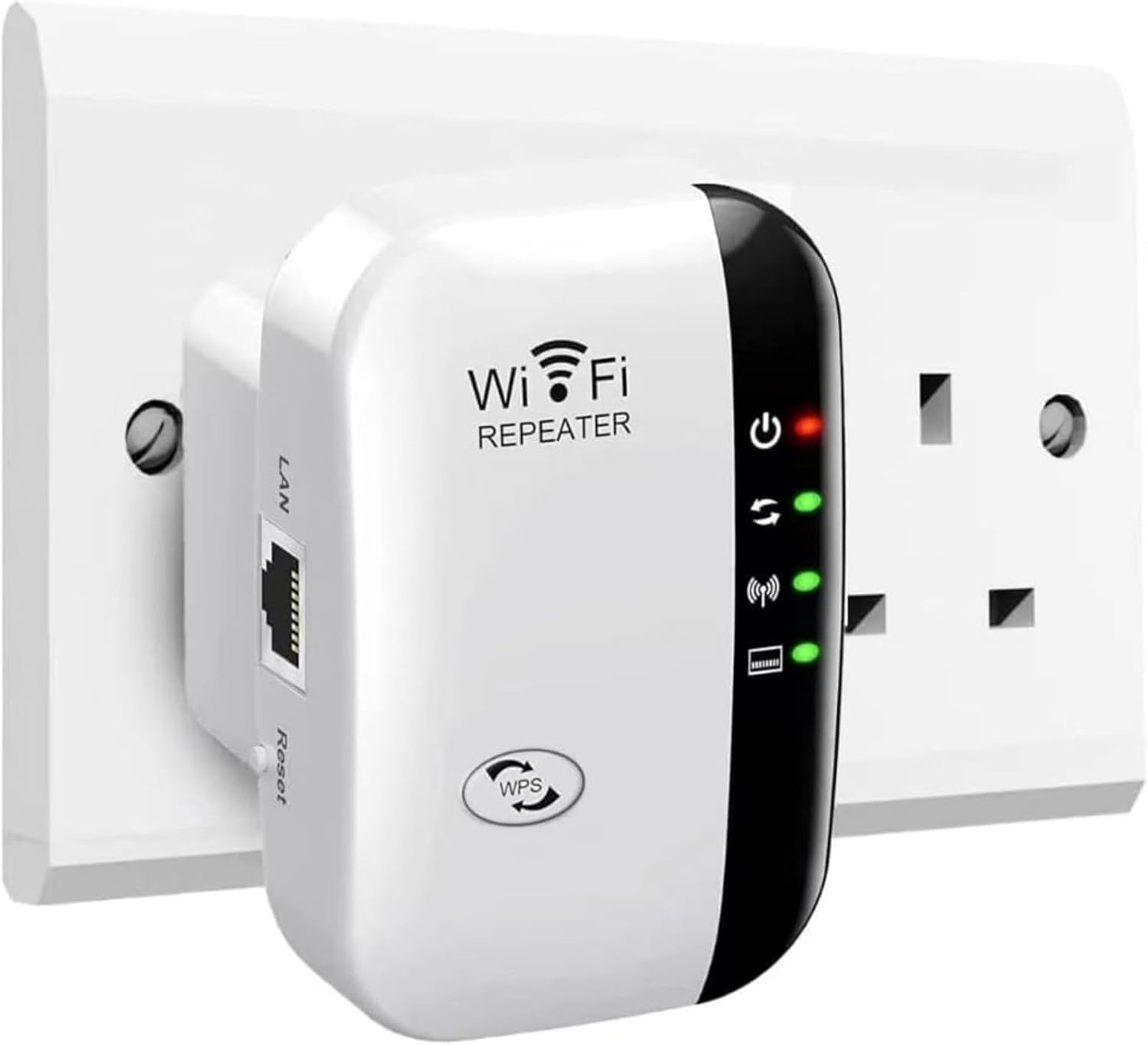 High-speed Wi-Fi extender boosts coverage up to 300 Mbps, eliminating dead zones for seamless gaming, video calls, and 4K streaming.