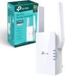 Dual band Wi-Fi 6 extender delivers up to 2402 Mbps on 5 GHz and 574 Mbps on 2.4 GHz for faster, smoother internet.